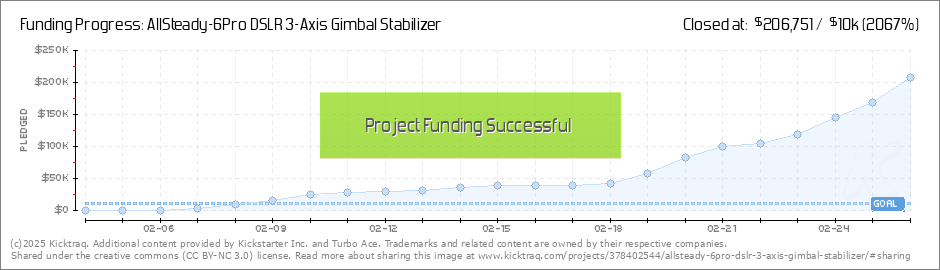 Thank you backers, due to your support we have broken the record in total number of DSLR gimbals pledged in Kickstarter history