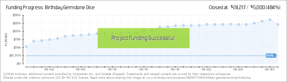 Hi Everyone! Sorry for the late night post, I have signed up with Backerkit! What that means is that you will be able to add to your pledges after the campaign closes, and if you miss the date you will be able to preorder the unlocked dice sets... (Read More)