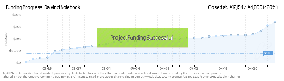 Stretch Goal is in Reach!This is so exciting….with just a little over 24 hours to go we still have a chance to reach our stretch goal. We're so close - only $1700 to go. If we can reach it, it means a pocket size Da Vinci Notebook will also be made... (Read More)