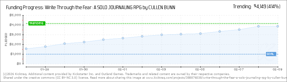 Help your backers reach your daily goals and help others see how you're doing. It's easy, with Kicktraq Mini.Here are a few quick snippits of code you can use to embed your personalized widget on your website, in your blog, and even on your favorite forum.
