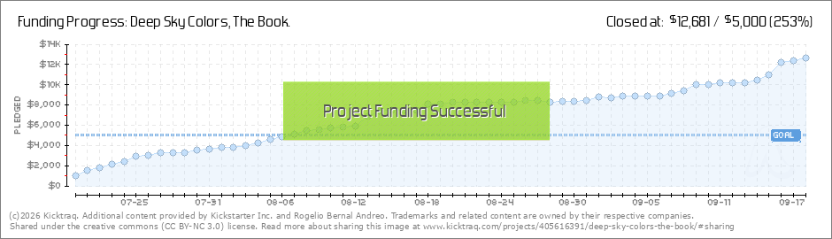 Yes we did!! We all did!!!In less than 20 days and with 40 more days to go, DEEP SKY COLORS, THE BOOK reached its funding goal, meaning, it's official the book will become a reality!! A huge thank you to each and every one of you who have contributed... (Read More)