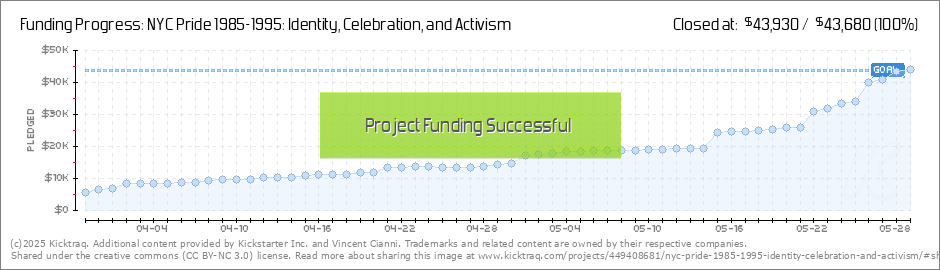 Thanks to everyone who has donated to the NYC Pride 1985-1995 campaign. Because of your dedication to social justice and the value of all people's lives, I am so proud to have you as the project backers and promise to fulfill your rewards as they... (Read More)