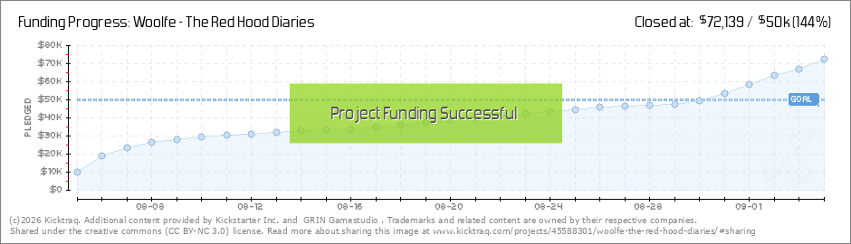 With roughly four days left, dark fairy tale platformer Woolfe: The Red Hood Diaries reached its $50,000 Kickstarter goal at some point yesterday. As a thank you to every backer, developer GRIN has added an additional reward to every tier: a digital copy (PDF) of a Woolfe tabletop/fantasy RPG. While the details are still being ironed out, the PDF will include "a Game Master Guide, Character sheets, and templates for creating dungeons and maps." (Read More)