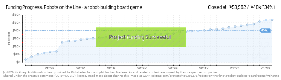 I posted Robots on the Line one week ago today. In that short amount of time: We're 64% funded 461 amazing backers Robots on the Line was the featured project and staff pick 123 comments Thank you for your support, your comments, and feedback. Let's... (Read More)