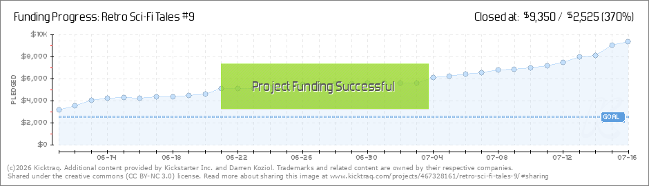 Stretch Goals reached! Wow, thank-you all so far! The 'Retro Sci-Fi Tales #9' Kickstarter is going great - currently at 273% funded - and we have several new readers buying complete sets, so I would like to say to everyone a BIG THANK-YOU and... (Read More)