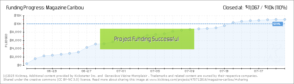 Help your backers reach your daily goals and help others see how you're doing. It's easy, with Kicktraq Mini.Here are a few quick snippits of code you can use to embed your personalized widget on your website, in your blog, and even on your favorite forum.
