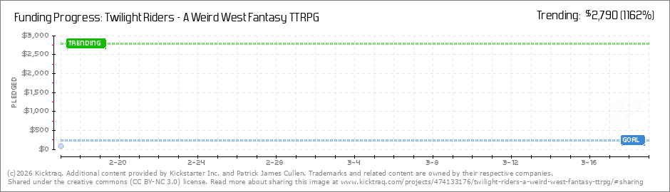 Help your backers reach your daily goals and help others see how you're doing. It's easy, with Kicktraq Mini.Here are a few quick snippits of code you can use to embed your personalized widget on your website, in your blog, and even on your favorite forum.