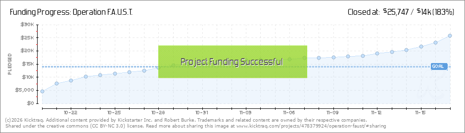 Hello friends! We've had an awesomefaustarama in the opening couple of days of the campaign and I'm feeling optimistic that Operation F.A.U.S.T. will fund, and hopefully hit some stretch goals. If you're interested in the theme of the game, here's... (Read More)