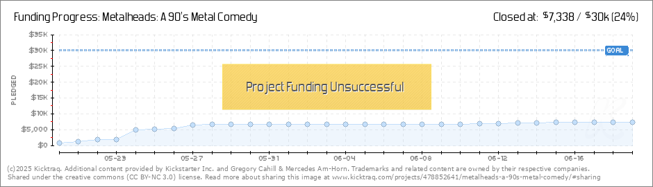 Greetings fellow Metalheads! We are psyched to announce that we have raised over $5K so far. Mercedes and I want to sincerely thank all of you for helping push this awesome flick forward. The momentum is great, so PLEASE remind like-minded family,... (Read More)