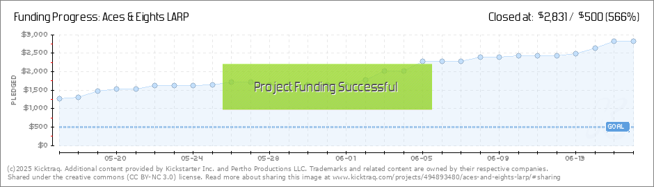 We here at Aces & Eights are utterly in awe of how amazing everyone is. We have officially met our Goal in.... 15 MINUTES! Some of the cool items are already claimed, but don't be discouraged because we will be adding Stretch Goals as well as... (Read More)