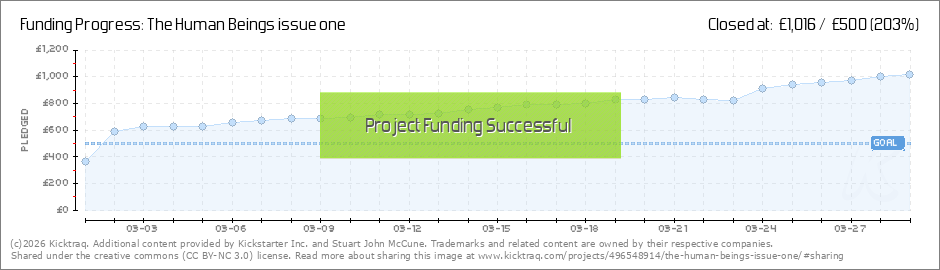That's one day down and The Human Beings is 74% funded. Thank you very much for this burst of support. It means the world to me. I cannot wait for you all to read this one! Please tell anyone about the book who you think may be into it and if you... (Read More)