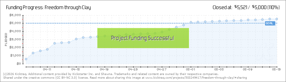 We have reached 74% backed! THANK YOU to everyone who has lent their support this far! I am hard at work on your rewards in anticipation of reaching my goal! Sneak peaks will be coming soon as I will be glazing this afternoon. (You can see the... (Read More)