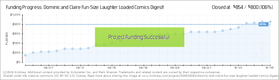 We have done it! Earlier today, the Kickstarter for Dominic & Claire Fun-Size was completely funded! Thank you so much for your pledges! I am going to keep this short. On Friday, the last day of the campaign, I'll give an update of what to... (Read More)