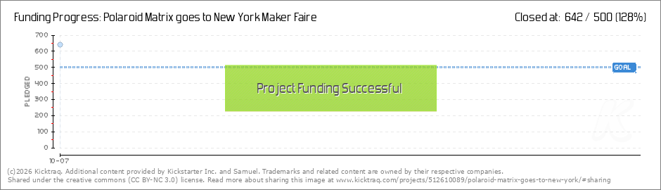 Incredible! Thank you all for you generous donations. Thanks to you i'll be able to give away polaroid flipbooks (at least 10 of them) to the attendees at MakerFaire NYC. (Read More)