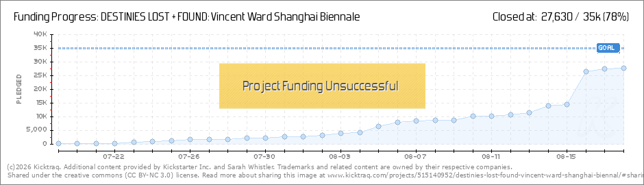 We are SO close! Only $7,000.00 to get to our goal....and 90 minutes to get there!!! Please help us if you haven't already by getting a couple more friends to pledge and let's get this project to Shanghai! x The ArtWard Trust (Read More)
