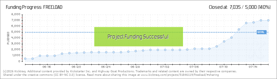 Thanks to an anonymous backer for putting FREELOAD over our goal! Incredible. The whole crew is ecstatic. We've received a lot of interest in this project, and we're proud to say we have the resources to finish producing it. Please keep sharing us... (Read More)