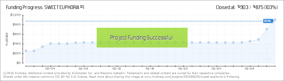 Hello! Thanks to everyone that's backed SWEET EUPHORIA so far. We're almost half way through and nearly 50% funded. If you can spread the word, it'd be much appreciated. Here's an update for anyone possibly interested in the Print Reward. It's not... (Read More)
