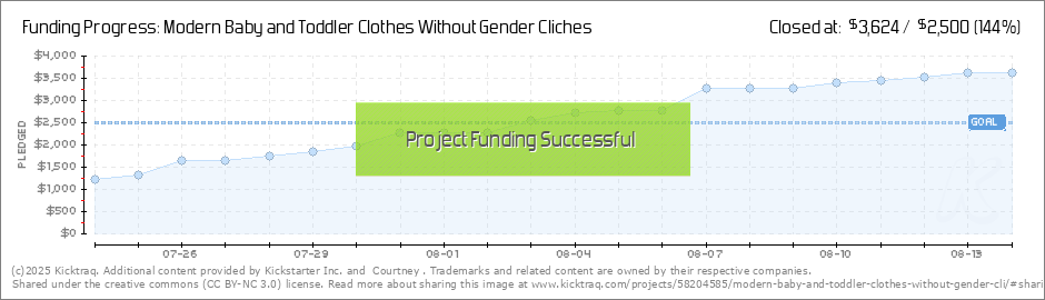 Good morning, wonderful Kickstarter backers! We are successfully funded! Together we raised $3624 to go out and make some cute stuff for boys AND girls. That meets the original goal for bib production and the $3000 stretch goal to launch with six... (Read More)