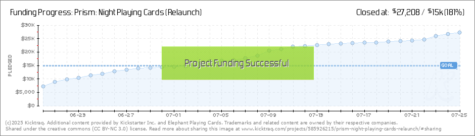 Hi Everyone!We are now at 412 backers, an incredible achievement for our first deck of playing cards, and it's all thanks to you! Thank you so much! Our Kicktraq estimates put us at trending towards $34,000, which means... we can unlock Prism: Day!!... (Read More)