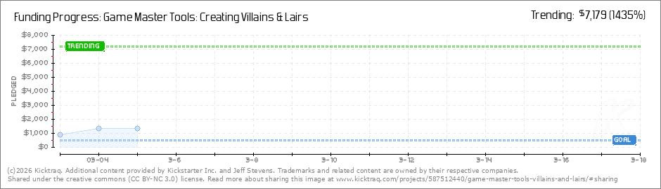 I'm excited to say the kickstarter for Game Master Tools - Creating Villains & Lairs is launching soon! While I anticipate launching the campaign March 3rd, I might delay that to March 10th. If you're following the project, you'll receive an... (Read More)