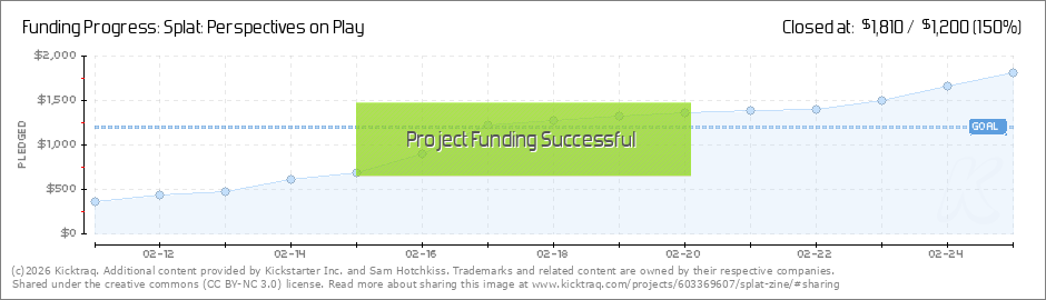 A few hours ago, we hit our stretch goal of $1600! Thank you to all the backers for making this possible. That means Matthew Gravelyn (designer of Mall Kids) will be joining the writing team. For "Splat", he will be writing an article that gives... (Read More)