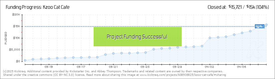 ONE WEEK TO GO - and we're almost half way there!! Remember: Kickstarter is all or nothing - we need to reach our goal by next Sunday or we don't get anything!! Now is the time we REALLY need your help to make Kzoo Cat Cafe a reality in our... (Read More)