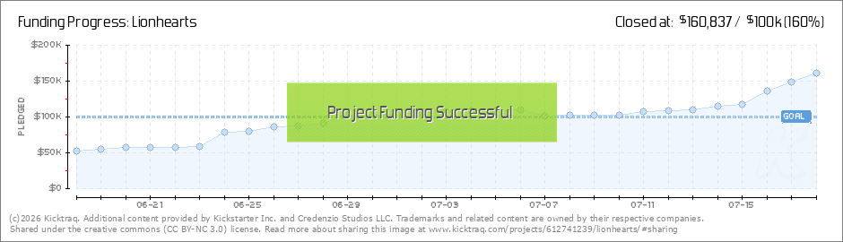 Hail, Lionheart! Our campaign is off to a thunderous start, all thanks to you! In under a week, we’ve raised more than $70,000 USD, already over 2/3rds of the way to our funding goal and we've been selected as Kickstarter “Project We Love”!... (Read More)