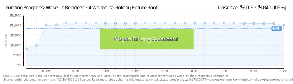 WE DID IT! Your pledges have launched Wake Up Reindeer! into reality! I couldn't be happier. I wanted to pass on my heartfelt gratitude for your support. In the next few days I'll be sharing some exciting news regarding the audiobook... stay... (Read More)
