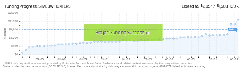 Okay everyone! The Kickstarter is just about there! 75% Funded with 9 Days left to go! We are working hard getting the SHADOW HUNTERS issue finished for all you wonderful supporters! Thank you for all your contributions and support! I could never... (Read More)