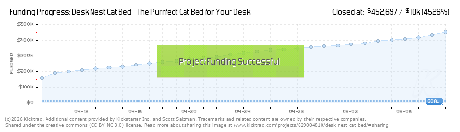 We are deeply grateful to all of the early Desk Next Cat Bed backers. Thank you all so much for believing in us and supporting the campaign. Words cannot express the feeling of gratitude.So far we’ve raised over $187,000 from more than 1600... (Read More)