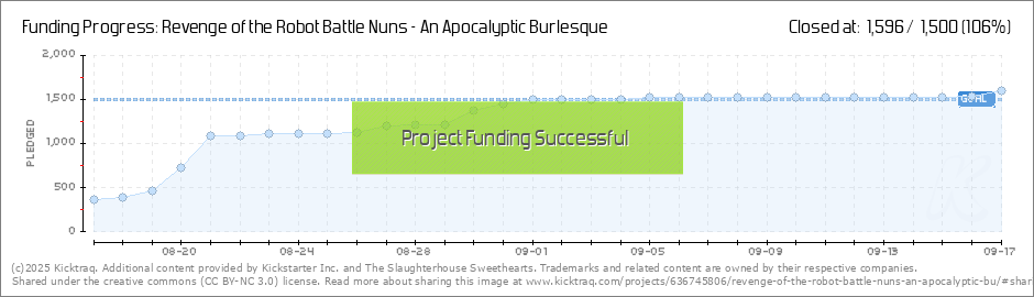 Help your backers reach your daily goals and help others see how you're doing. It's easy, with Kicktraq Mini.Here are a few quick snippits of code you can use to embed your personalized widget on your website, in your blog, and even on your favorite forum.