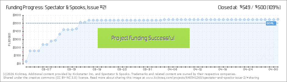 You're knocking me dead, #Spooksters. Over fifty days left for this fundraiser and we've already raised 68% of our total goal of $500! More days to come but I'll certainly be walking around on air until then...thanks for all your support so far. It... (Read More)