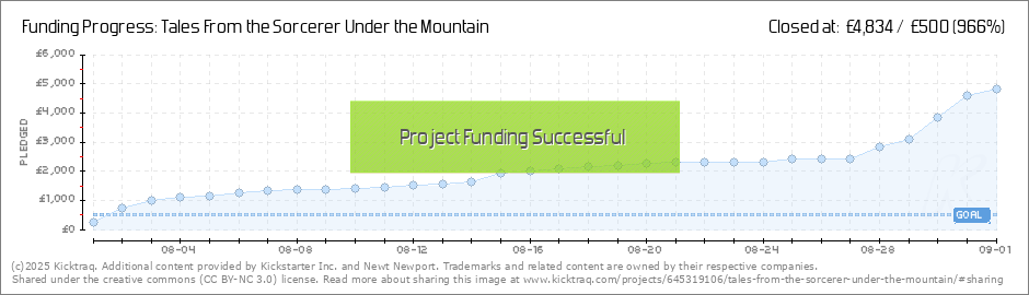 Good Morning Glorious Backers and Currious Onlookers I've just added a high tier reward to the campaign, for those who want everything the campaign produces in print, signed and sent directly to them. Sorcerer Under the Mountain (£100) You are the... (Read More)