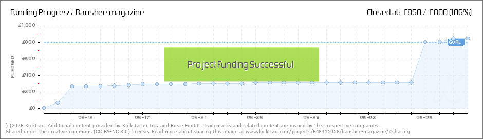 Thank you so so much to all our Kickstarter backers! We will be going to print very very soon so keep your eyes peeled for launch details @bansheepublications xxx (Read More)