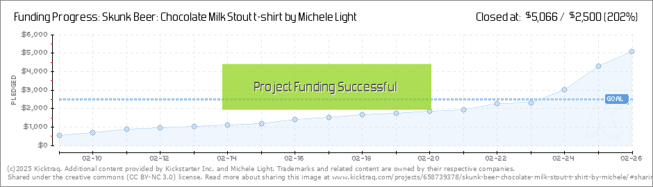 We're heading into the final weekend for Chocolate Milk Stout, please remind anyone you know that last call is almost here! I've also set the stretch goal amount for the Skunk Beer Premium Lager shirt, which is $3,500. Since it's a limited run the... (Read More)