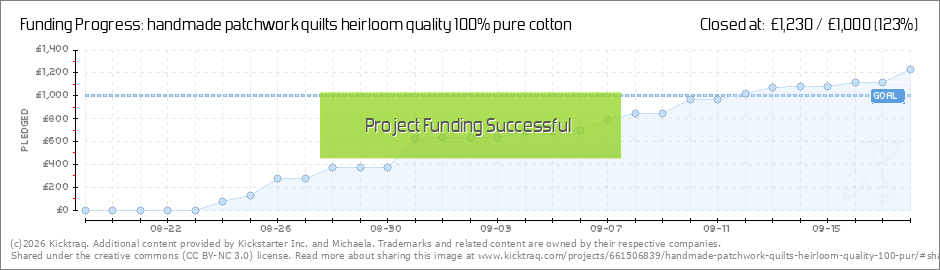 I am so close now, I can hardly believe how amazing you all are! My son also wishes to say how incredible you all are. In three weeks I have become Sunflower Quilts and have made a blog and an Etsy shop, all because of your help from kickstarter!... (Read More)