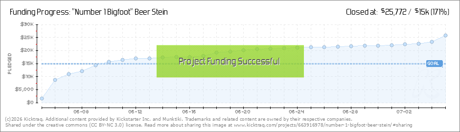Bigfoot Trading Card - COA Hello Kickstarters We are happy to say that the $20,000 Stretch Goal has been met! All Bigfoot Steins will now come with a Trading Card - Certificate of Authenticity. Our next stretch goal at $30,000 is for a super cool... (Read More)