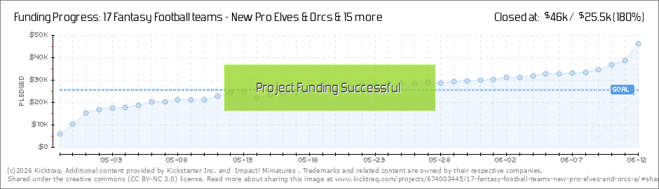 Thank you backers ... we've unlocked the full Dark Elf team with their own set of full 5 Elven Star Players. Shown below (thanks to monsoda.com for the image). Now I had a special new figure announcement ready for $31,000 .... but it is not... (Read More)