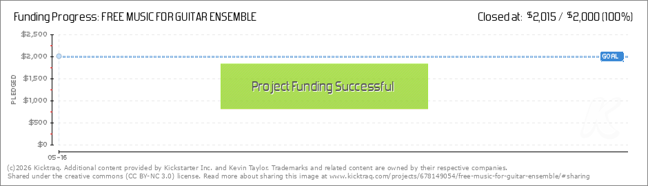 This Project funds the composition/publication of music for guitar ensemble. The music will be FREE to ensembles anywhere.