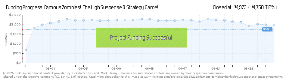 Famous Zombies will now have a Print & Play support level available! Once the campaign is complete, the full version of the game well be sent via e-mail to all who support on this level. Thank you for your support! (Read More)