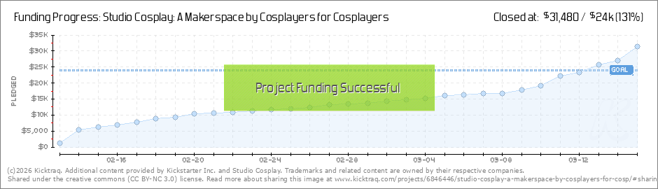 Stretch Goals!374 of you have blessed us with $25,876!! Thank you! We are so humbled and excited about what you've made possible with your generosity! Studio Cosplay owes its walls, equipment, and community to everyone who has pledged, shared,... (Read More)