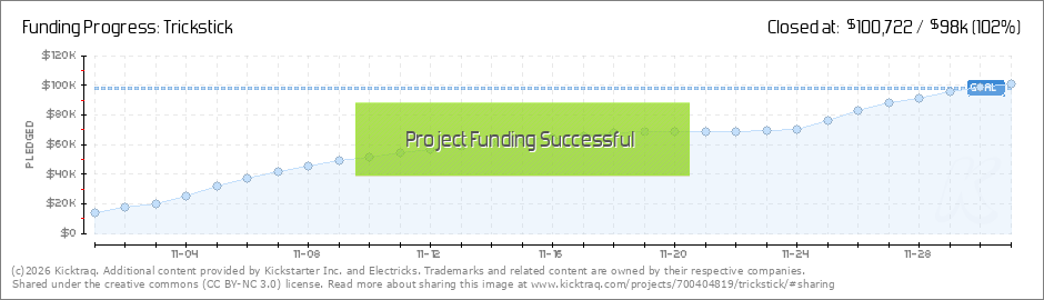 The Trickstick has been successfully funded! Thanks to everyone who has made this a reality. We're starting work right now to get Tricksticks to our backers. For those who missed it, you we've just opened up pre-orders on our website: ... (Read More)