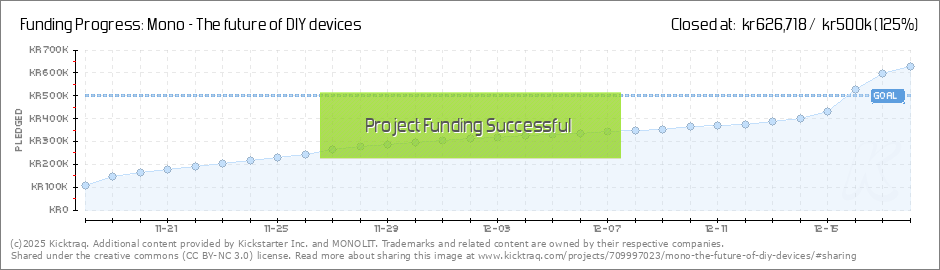 We've passed the 500.000KR mark! And we are beside ourselves with happiness! And you should be too, because this means that Mono is a reality, yes your Mono is a reality! We really couldn't have done this without you backing us and helping us share... (Read More)
