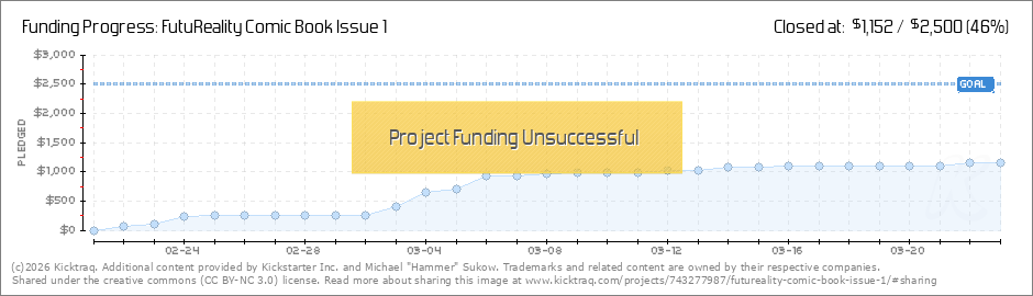 Hello all, I appreciate everyone's support of this comic book. In approximately 60 hours, I'll know if this will be funded. It's been a heck of a ride and I'm keeping my fingers crossed. Thank you again for your support! Mike "Hammer" Sukow (Read More)
