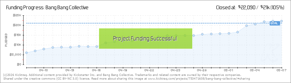Help your backers reach your daily goals and help others see how you're doing. It's easy, with Kicktraq Mini.Here are a few quick snippits of code you can use to embed your personalized widget on your website, in your blog, and even on your favorite forum.