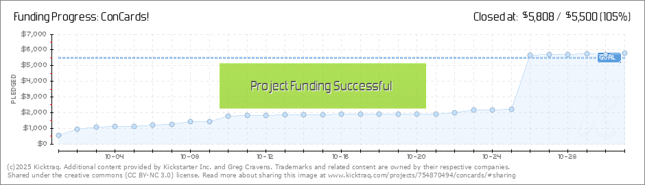 Well!! Thanks to all of you!! It seems like everyone will now be getting their fancy, fancy ConCards! There are four days left for things to go right or wrong, as things are wont to do But fate willing, ConCards will get its legs under it and... (Read More)