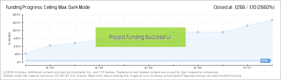 Help your backers reach your daily goals and help others see how you're doing. It's easy, with Kicktraq Mini.Here are a few quick snippits of code you can use to embed your personalized widget on your website, in your blog, and even on your favorite forum.