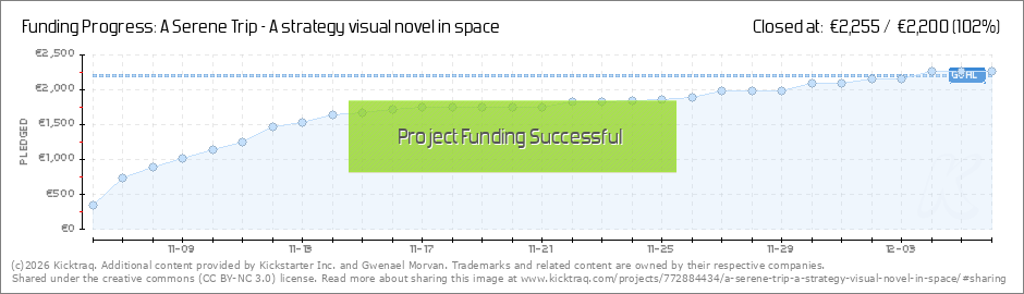 Version française ci-dessous We have reached our goal and A Serene Trip will have custom music by Anubhab Sett thanks to you! I am now going to work with Anubhab on the music and sound effects.I also have some drawings left to do, and the French... (Read More)