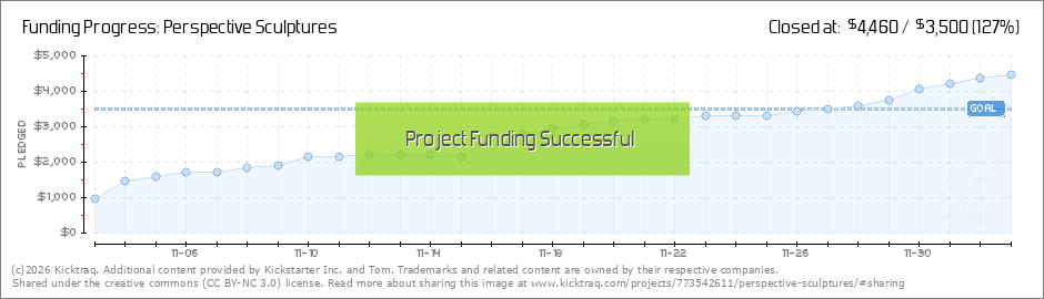 We're so close to the end of the campaign everyone! Last chance if you still haven't pledged, or are looking to change your pledge! It's been amazing, thank you all. If you pledged to receive a sculpture by Christmas, then you should have received... (Read More)