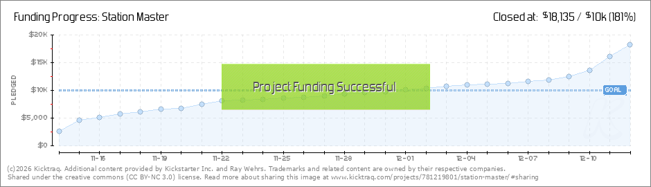 Hello, Station Masters! There's only one thing to say right about now... WOO-HOO!!! Last night, we hit our funding goal of $10,000! Thank you to every single one of you for pledging and being a part of this journey! It really means everything to... (Read More)